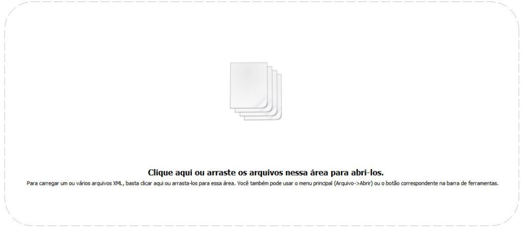 Editor XML: nesta área, encontre e visualize todas as linhas contidas no arquivo XML. Caso o usuário queira fechar o documento, basta clicar no botão fechar, representado por um “X” na cor vermelha, na parte superior desta área.