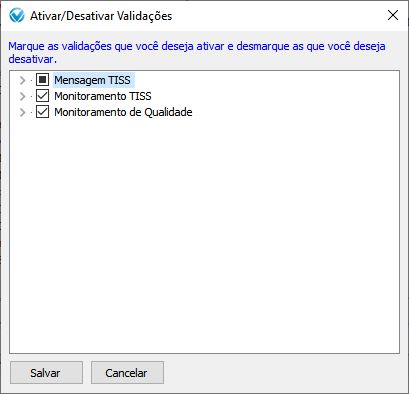 | Validar XML: tem a função de validar o arquivo XML, conforme as diretrizes do padrão TISS, da ANS. |